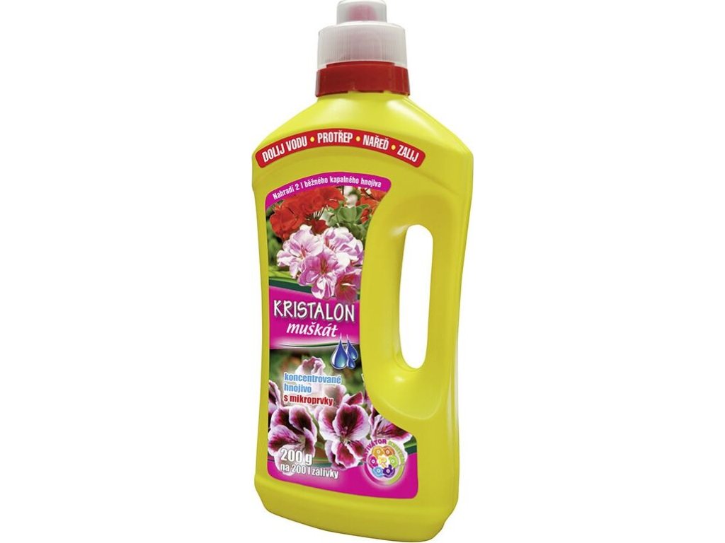 KRISTALON Muškát - koncentrované hnojivo v láhvi představuje zcela revoluční způsob použití. Usnadní přípravu kapalného koncentrátu. Jeho aplikace při namíchání hnojivé zálivky bude rychlejší a bezpečnější. Toto prémiové hnojivo je vhodné pro muškáty a pro ostatní balkónové rostliny – surfinie, begonie, fuchsie, lobelky, vějířovky, gazánie atd. Ve čtyřech krocích (dolij vodu - protřep - nařeď - zalij) lze dodat rostlinám zásobu všech základních živin. Ty jsou pro rostliny dobře přijatelné. Rostliny jsou zelenější a vytvářejí bohatší kvetení. Mikroprvky v hnojivu (bór, molybden, měď, železo, mangan a zinek) působí na rostliny blahodárně jakovitamíny.