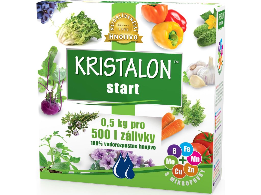 KRISTALON Start je krystalické ES hnojivo, vodorozpustné a určené pro rychlejší start v počátečním růstu a dále v produkčním období rostlin. Kristalon je univerzálně použitelný pro zeleninu, okrasné rostliny včetně balkonových, cibuloviny, drobné ovoce i ovocné stromy. Zamezuje žloutnutí listů. Hnojivo je rychle účinné a způsobuje nárůst zelené hmoty.