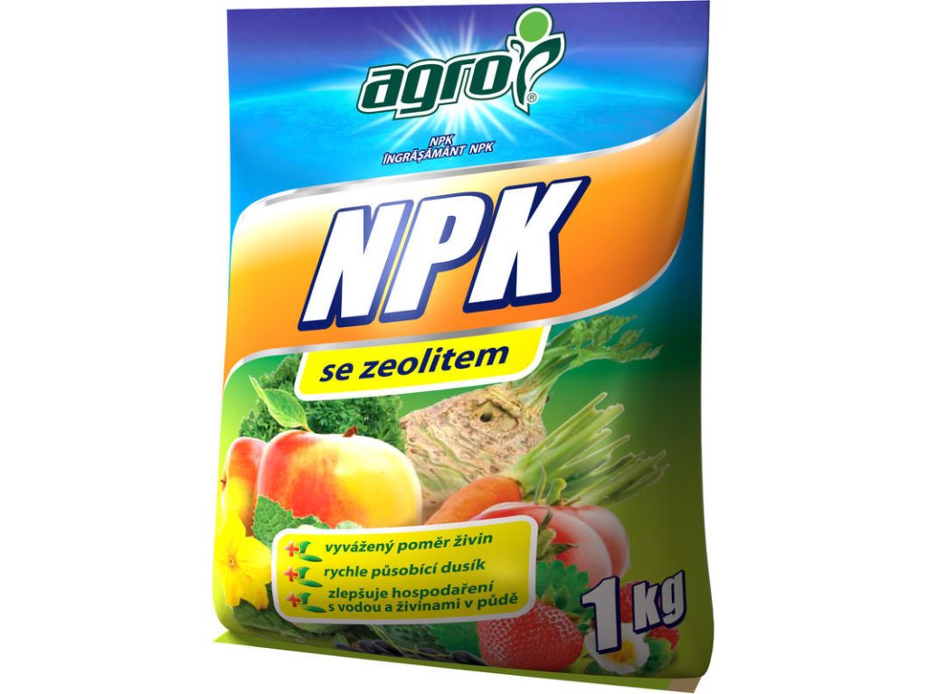AGRO NPK je minerální hnojivo určené k základnímu hnojení ovoce a zeleniny před vlastní výsadbou a k přihnojování v průběhu vegetace. Hnojivo má vyvážený poměr živin, vysoký obsah dusíku v rychle působící formě pro bujný a rychlý nárůst plodin. Obsahuje přírodní horninu ZEOLIT, který na sebe poutá živiny a následně je pozvolna uvolňuje do půdy pro potřeby rostlin. ZEOLIT rovněž vylepšuje strukturu a vzdušnost půdy.