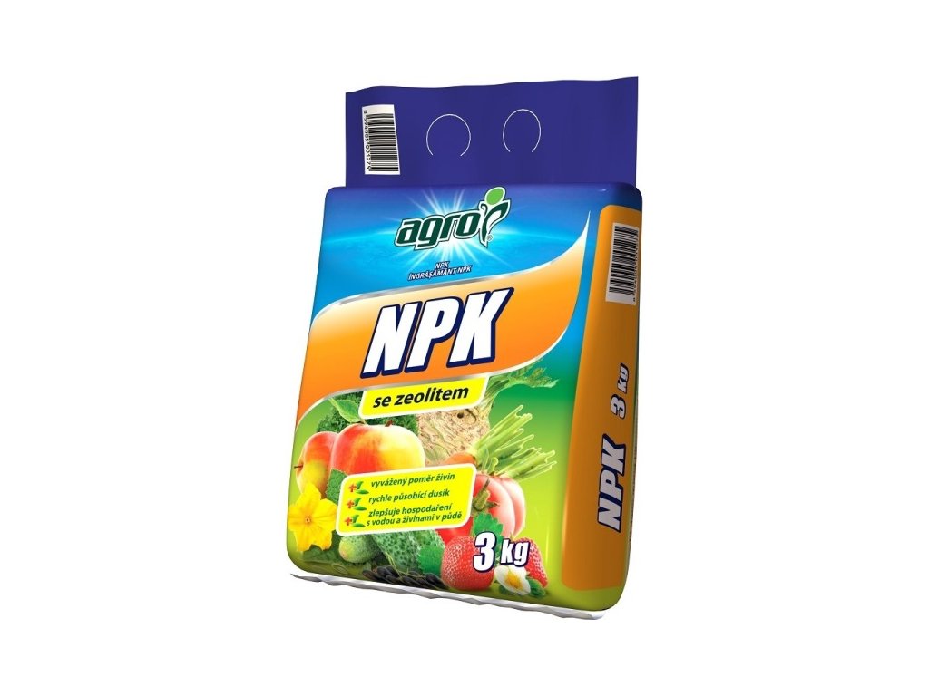 AGRO NPK je minerální hnojivo určené k základnímu hnojení ovoce a zeleniny před vlastní výsadbou a k přihnojování v průběhu vegetace. Hnojivo má vyvážený poměr živin, vysoký obsah dusíku v rychle působící formě pro bujný a rychlý nárůst plodin. Obsahuje přírodní horninu ZEOLIT, který na sebe poutá živiny a následně je pozvolna uvolňuje do půdy pro potřeby rostlin. ZEOLIT rovněž vylepšuje strukturu a vzdušnost půdy.