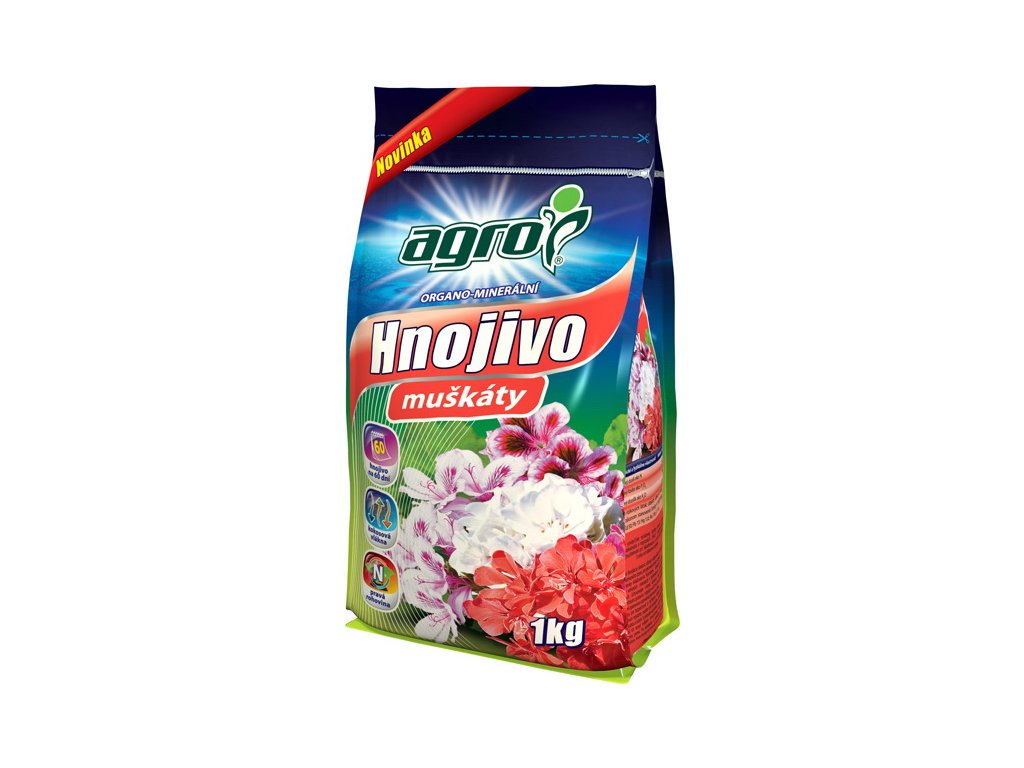 AGRO organominerální hnojivo pro muškáty vytváří ideální prostředí pro muškáty, pelargonie, petúnie a příbuzné rostliny a podporuje je ve zdravém růstu a bohatém nasazení a probarvení květů. Hnojivo je vhodné pro všechny druhy muškátů a a dalších příbuzných kvetoucích rostlin pěstovaných v nádobách i ve ve volné půdě, kde díky organické a minerální složce působí rychle a zároveň dlouhodobě, a to po dobu až 60 dní.Hnojivo na muškáty je vícesložkové a svým složením příznivě ovlivňuje vytváření úrodného humusu v půdě a tím přímo zvyšuje její úrodnost. Organická forma dusíku zabraňuje nežádoucímu přehnojení a reguluje vodní režim rostlin.