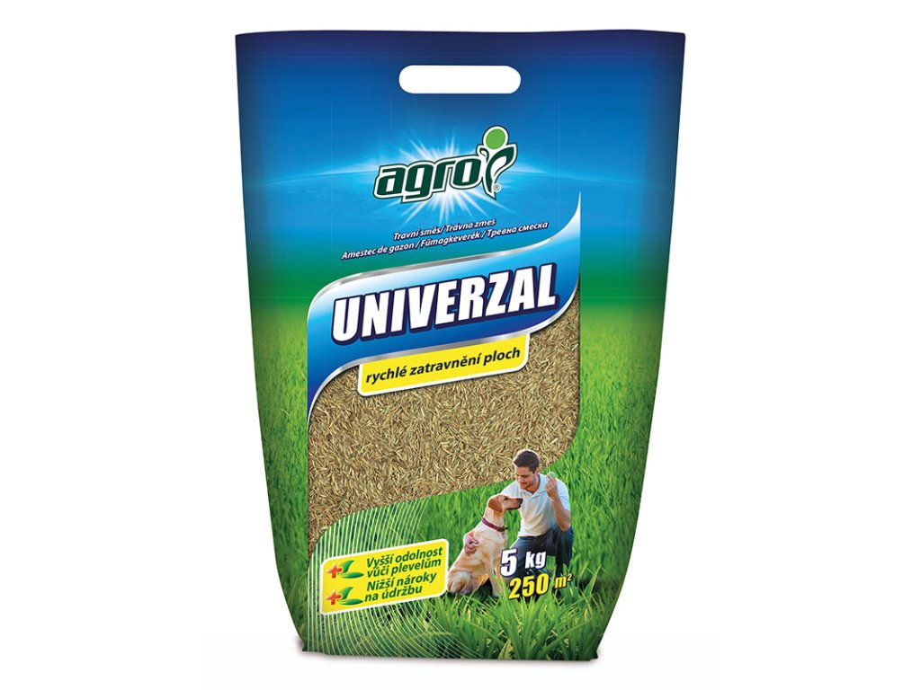 Univerzální směs pro snadné a rychlé zatravnění. Travní směs AGRO UNIVERZAL je připravena z kvalitních travních odrůd, které umožňují rychlé zatravnění a snadné zapojení do stávajících porostů. Je vhodná pro zatravnění ploch kolem budov, cest, na sídlištích i v parcích. Trávník má nižší nároky na údržbu a zároveň dobře odolává plevelům.