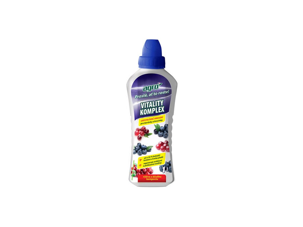 VITALITY KOMPLEX je výluh z vermikompostu (vzniká činností kalifornských žížal). Vedle živin a mikroprvků obsahuje tzv. urychlovač hnojení, který se používá k obnovení vitality a růstu rostlin, ke zvýšení odolnosti proti abiotickým stresům (sucho, přemokření apod.), urychluje regeneraci, stimuluje růst rostlin po poškození chorobami a škůdci. Zvláště vhodný je pro oslabené, nerostoucí a zanedbané rostliny. Humusové látky omezují únavu půdy a její vyčerpání.