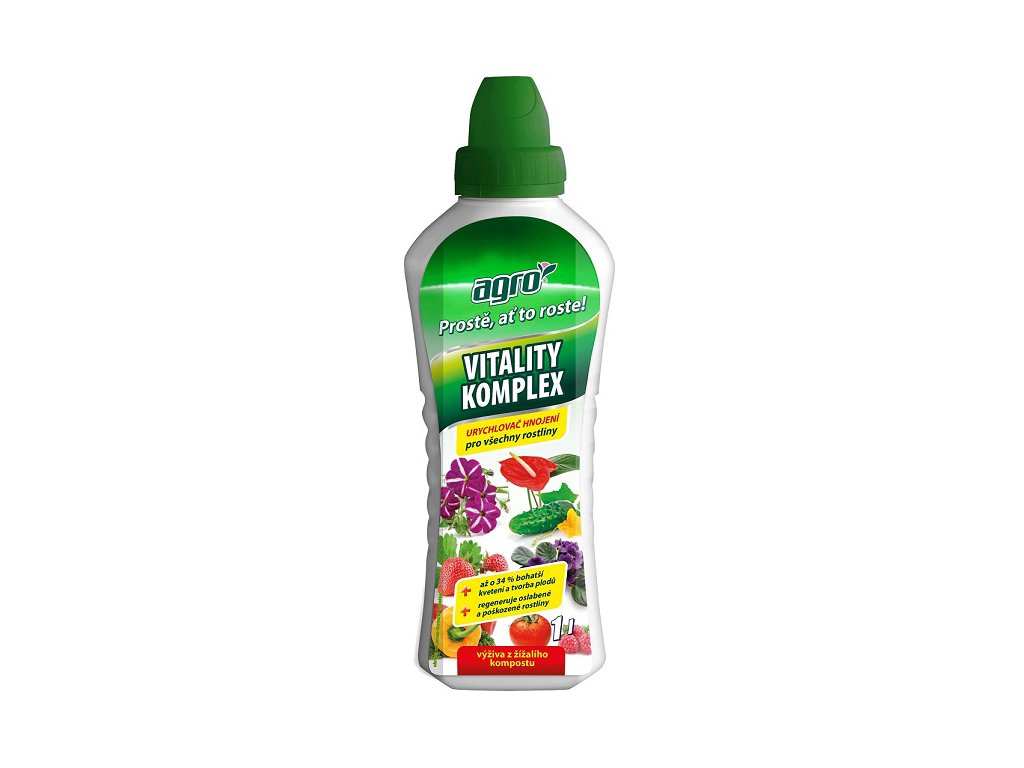 AGRO Vitality Komplex je vynikajícím pomocníkem k posílení imunity rostlin, obnovení jejich vitality a růstu. Nezaměnitelná receptura Vitality Komplex urychluje regeneraci rostlin po poškození chorobami a škůdci a posiluje odolnost vůči stresu. Jeho použití je vhodné na všechny druhy pokojových rostlin, drobného ovoce, zeleniny, okrasných rostlin a dalších rostlin na zahradě. Tento komplexní rostlinný přípravek doporučujeme aplikovat na oslabené, nerostoucí a zanedbané rostliny.