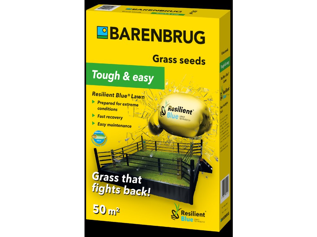 Trávník připravený na klimatickou změnu. Směs Resilient Blue® je navržena pro odolnost vůči suchu, horku i silným dešťům. Díky špičkovému složení a úpravě osiva technologií Yellow Jacket® se rychle regeneruje, klíčí i za zhoršených podmínek a zůstává hustý a vitální.