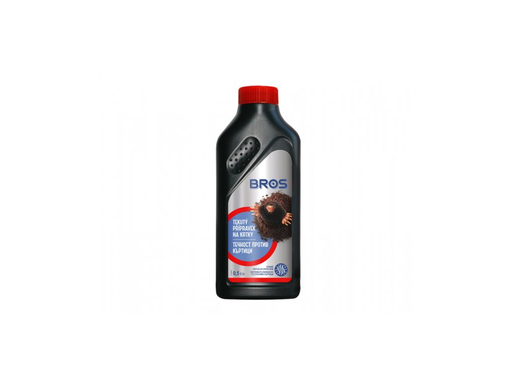 Tekutý biocidní přípravek značky BROS je určen pro spolehlivé odpuzování krtků na zahradách, dětských hřištích, sportovištích i okrasných trávnících. Jeho specifický zápach nevyvolává úhyn, ale přiměje krtky opustit chráněné území. Díky dlouhodobému účinku ho ocení každý zahrádkář.