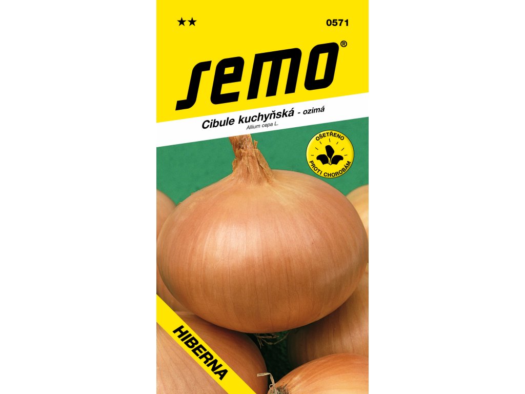 HIBERNA (kód 0571) – výnosná ozimá odrůda s velkou kulovitou až mírně ploše kulovitou cibulí se středním až silnějším krčkem. Dužnina je bílá, pevná, jemné, velmi dobré cibulovité chuti. Cibule je obalena suknicemi žlutohnědé až bronzově hnědé barvy s tmavším žilkováním. Rostliny velmi dobře přezimují. Lze ji sklidit jako cibuli s natí – zelenačku, jako čerstvou i suchou. Vegetační doba je od ledna do sklizně cibule s natí 163 dní, do sklizně čerstvé cibule 185 dnů a suché 205 dnů. Termín sklizně zelenačky je druhá dekáda června. Hmotnost tržní cibule je 55 - 65 g. Je krátkodobě skladovatelná.