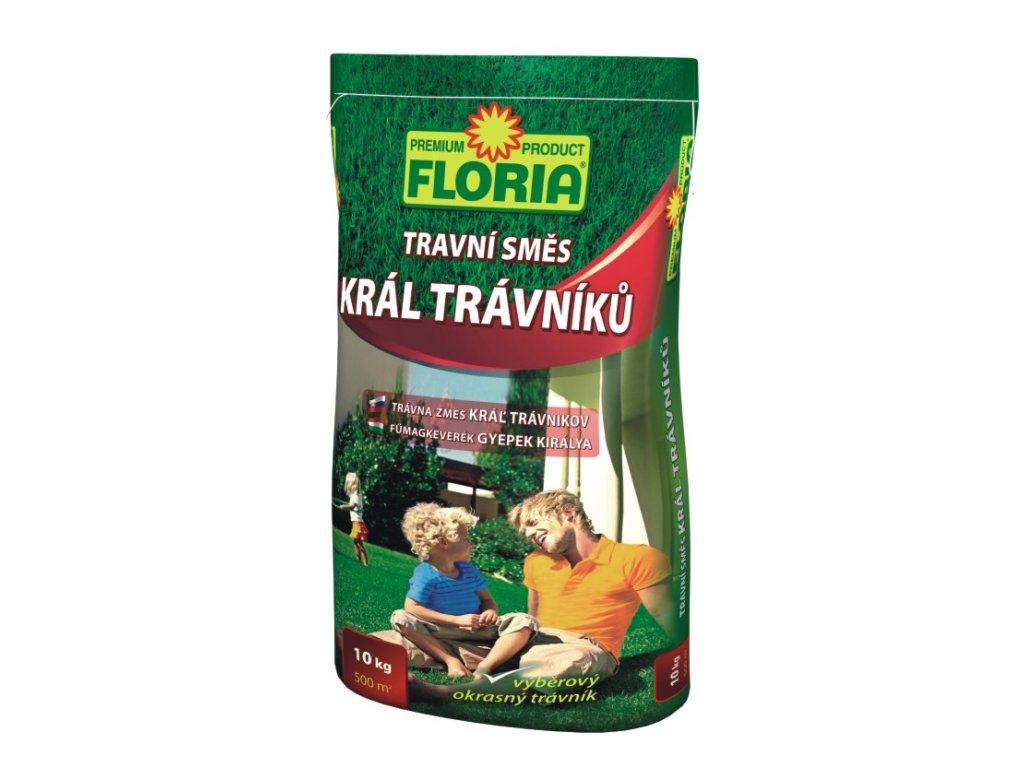 FLORIA Travní směs Král trávníků je travní směs nejvyšší kvality určená k zakládání reprezentativních ploch v okolí rodinných domů. Po použití této směsi travník vyniká pružným měkkých drnem a je odolný extrémním zátěžím. Vytváří středně jemný, hustý a dobře odnožující trávník.