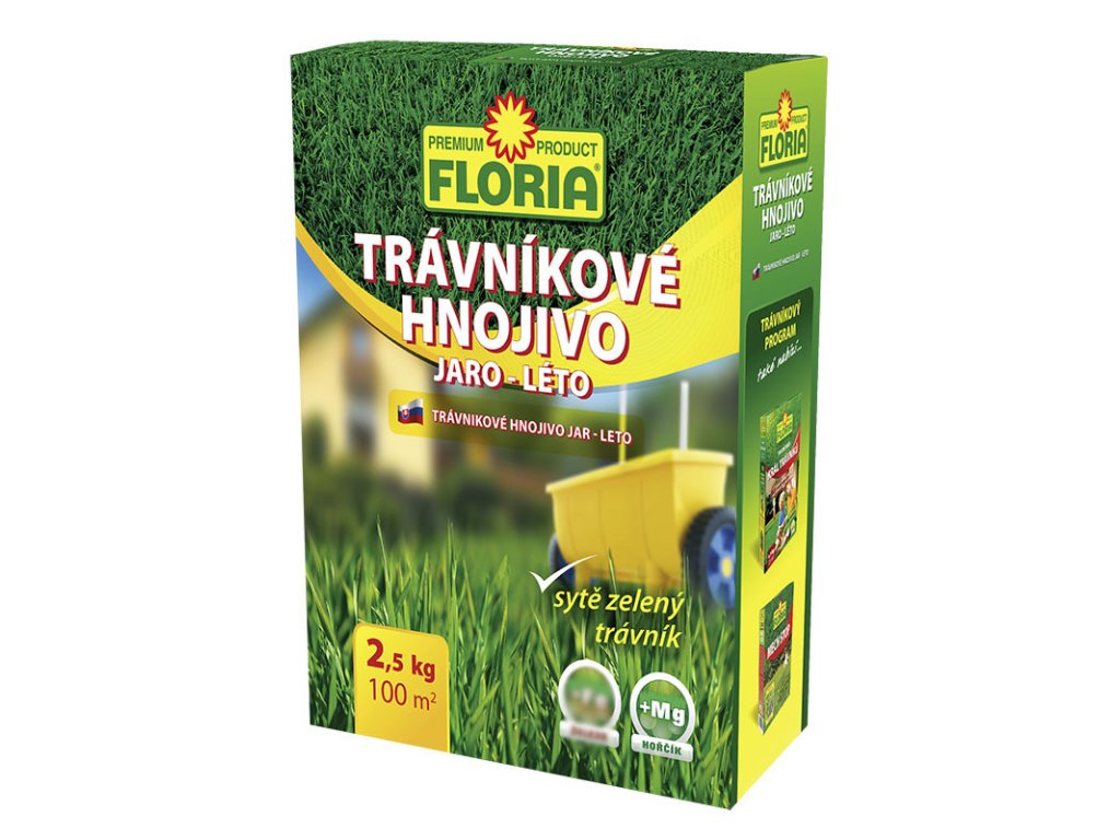 FLORIA Trávníkové hnojivo JARO-LÉTO je univerzální hnojivo s dlouhodobým účinkem pro základní hnojení i přihnojování stávajících nebo nově založených travnatých ploch. Optimálně vyvážené živiny jsou ve snadno přijatelné formě a trávník tak rychle reaguje na přihnojení. Správným používání hnojiva podpoříme silný a zdravý růst trávníku a potlačíme růst mechů a plevele. Použití hnojiva je vhodné pro všechny typy trávníků.