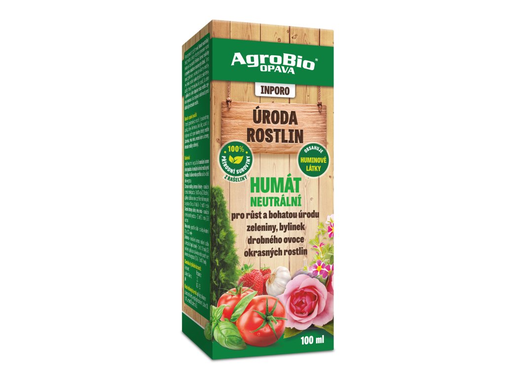PŘÍRODNÍ PRODUKT. Humát neutrální je vodný roztok získaný řízeným procesem vodné extrakce ze suché tříděné černé rašeliny s vysokým obsahem huminových látek. Tento kapalný přípravek je určen pro všechny rostliny, s výjimkou rostlin kyselomilných (rododendrony, azalky, vřesy, hortenzie, borůvky, apod.). Je určen k aplikacím s cílem zlepšení růstu rostlin, zvýšení výnosu a k ochraně proti stresům rostlin. Navíc má také antibakteriální účinky.