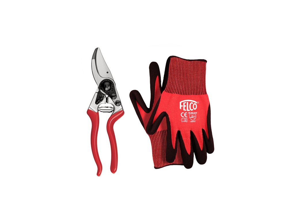 Dárkový set, který obsahuje zahradní ergonomické nůžky FELCO 8 + rukavice 701 XL