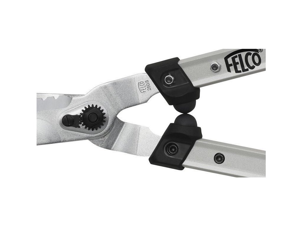 FELCO 250-57 má chromované čepele, které zabraňují korozi kalené oceli. Velmi ostrá řezná hrana poskytuje rychlé a čisté řezy, zatímco vnitřní část čepele je zoubkovaná pro řezání ocelových drátů nebo tužších, silnějších větví.