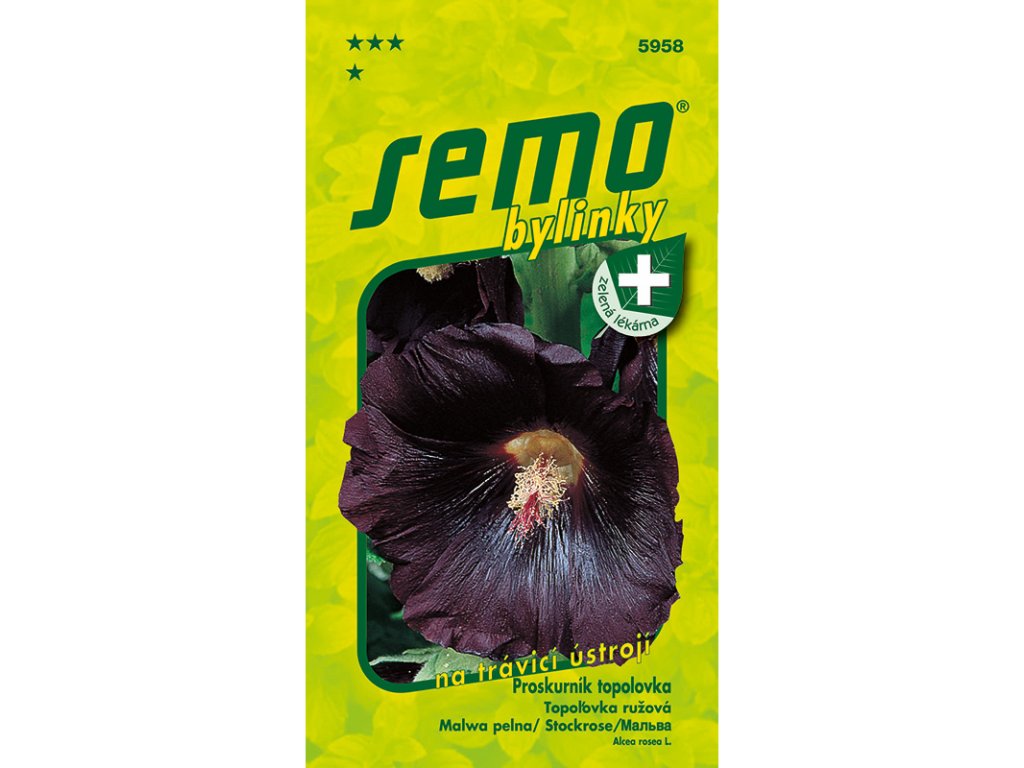 Kolekce ZELENÁ LÉKÁRNA – dvou až víceletá rostlina dorůstající výšky až 2 m, vytvářející v prvním roce přízemní růžici listů. Ve druhém roce vyhání až 2 m vysokou květní lodyhu, na níž rozkvétají velké černofialové květy mající až 10 cm v průměru. Kvete druhým rokem od června do září. Vyžaduje teplejší polohy chráněné před větrem. Daří se jí na půdě hluboké a bohatě zásobené živinami a humusem.