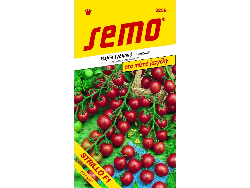 Rajče tyčkové Strillo F1 je tyčkové třešňové rajče s plody o hmotnosti kolem 15 gramů. Plody jsou pevné a odolné k praskání, i navzdory tomu ale velice chutné a sladké. Výnosný hybrid s dlouhými hrozny nesoucími 15 až 18 plodů. Rajče vhodné pro fóliovníky i polní pěstování, rezistentní k verticíliu, fuzáriu i háďátkům.