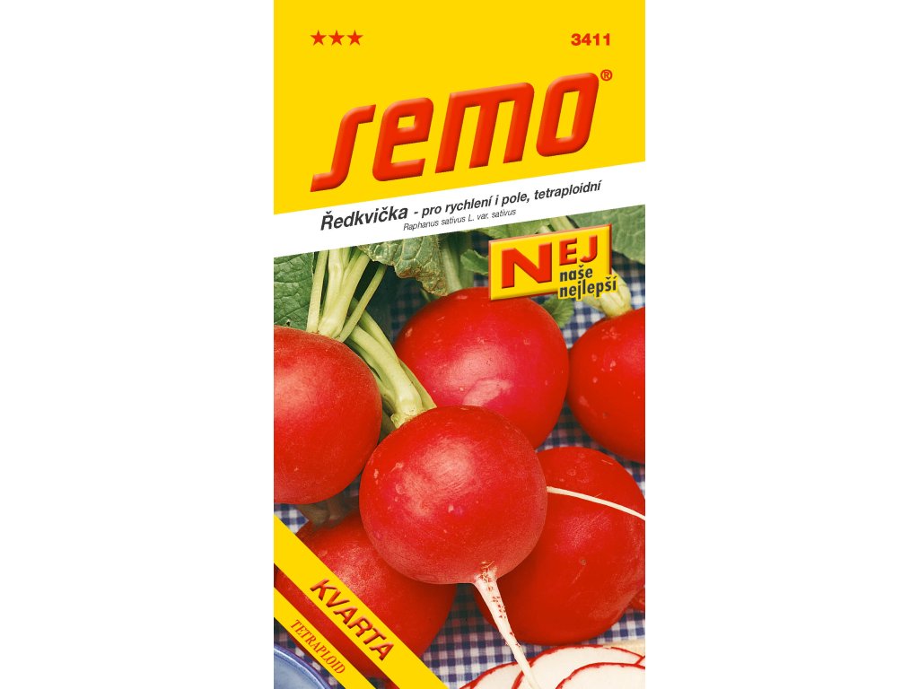 KVARTA HR (kód 3411) – kolekce NEJ - raná tetraploidní odrůda tmavě červené barvy, s ploše kulovitou až kulovitou bulvičkou, s tupě špičatou bází, matně bílou barvou dužniny a tlustou pokožkou. Má velmi dobrou odolnost proti praskání bulviček, proti vybíhání do květu i proti houbovatění dužniny. Vyznačuje se nižší tvarovou vyrovnaností. Lze ji doporučit pro rychlení i pro jarní a podzimní pěstování ve volné půdě.