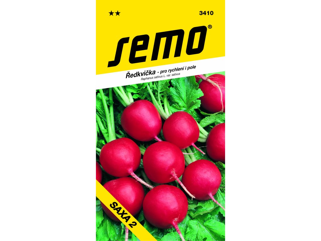 SAXA 2 (kód 3410) – raná odrůda pro rychlení a rané polní pěstování. Bulvičky jsou střední až silné, kulovitého tvaru, intenzivně červené barvy. Odrůda je odolná ke korkovatění. Dosahuje dobrých výnosů i dobrého třídění. Tuto odrůdu nabízíme také v BIO kvalitě!