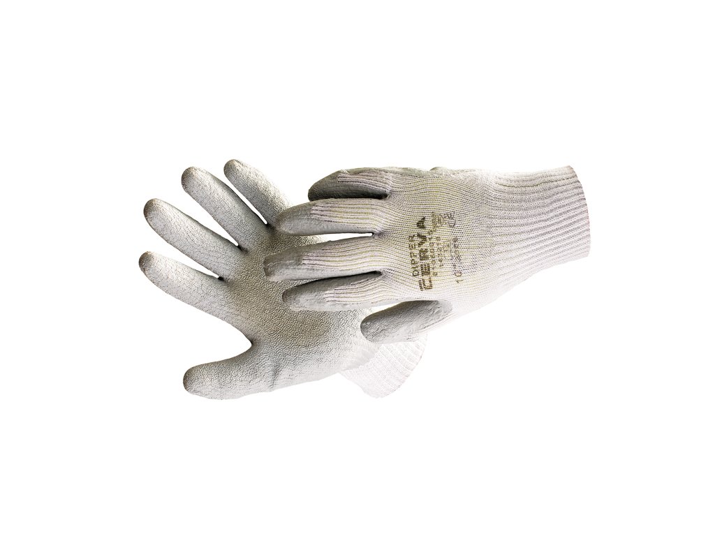 Pletené bezešvé nylonové rukavice. Polomáčené v latexu.
