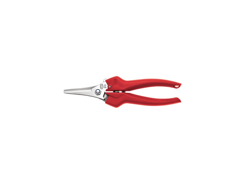 Sklízecí nůžky s úzkou stříhací hlavicí pro snadný přístup k větvičkám a ovoci.
