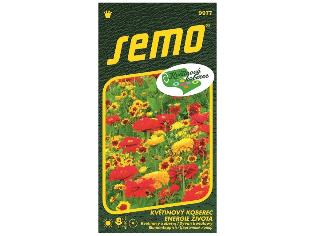 Směs letniček Energie života je složená ze 7 letniček, které nám svojí sytou a jasnou barvou představují rozkvetlou energii okamžiku. Květy v podání žlutých a červených tónů cínie, aksamitníku, krásnoočka a titónie nás nenechají v klidu. Letničky vyséváme od dubna do června, doba květu je červenec až září, vždy v závislosti na výsevu. Výška květinového koberce je 60 až 90 cm. Složení směsi: Cínie, aksamitník, krásnoočko, titónie, měsíček.