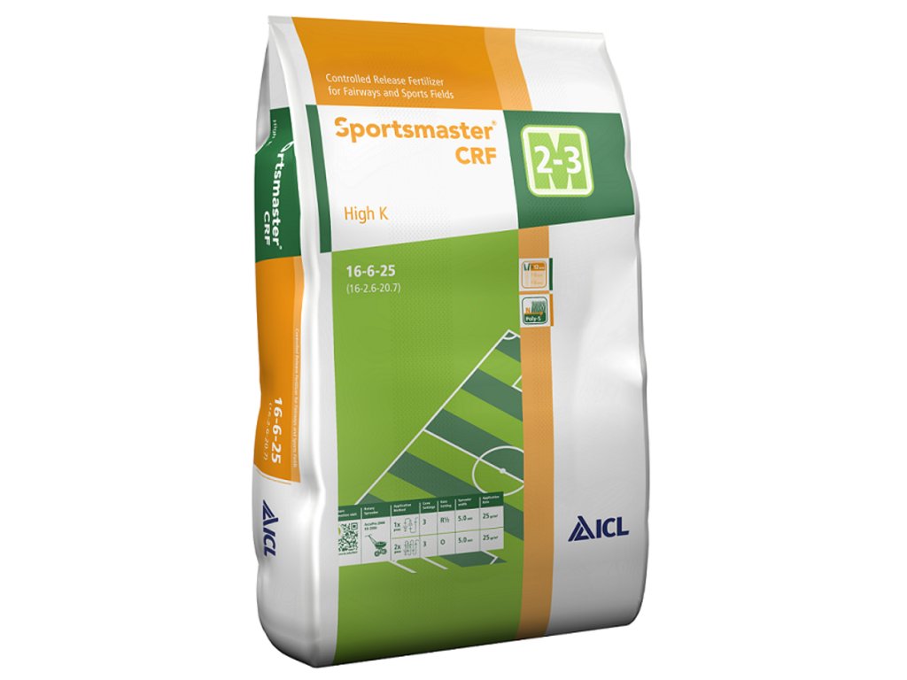 Sportsmaster High K (2-3 měsíce) je kombinací technologie řízeného uvolňování živin a vícesložkových granulovaných hnojiv. Zajišťuje rovnoměrný růst bez prudkých výkyvů. Část hnojiva není obalena, což umožňuje okamžitou reakci.