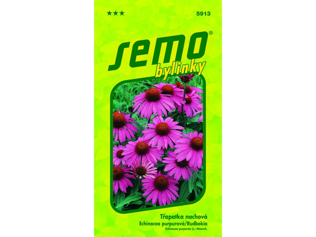 TŘAPATKA NACHOVÁ (kód 5913) – mohutná trsnatá trvalka původem z Ameriky. Její šťáva může způsobit místní znecitlivění, proto byla používaná Indiány při poranění nebo kousnutí hmyzem, dokonce i jako protijed při uštknutí chřestýšem. Vnitřně ji Indiáni používali při kašli, bolestech hlavy a břicha a na zduřené uzliny. Tato léčivka obsahuje látky tlumící bolest a zabraňující infekcím, účinně hubí bakterie a plísně. Používá se k přípravě dezinfekčních mýdel a antiseptických mastí na rány. Čaj z třapatky zvyšuje celkovou odolnost těla a čistí krev. Rostlina je vysoká 80 cm, kvete od poloviny léta purpurově červenými květy. Nejlépe se jí daří na slunci, v humózní a propustné půdě. Rostliny jsou silné a odolné vůči suchu. Lihový extrakt z kořenů povzbuzuje imunitní systém organismu. Často je doporučován jako podpůrná léčba při nachlazení, angínách apod.