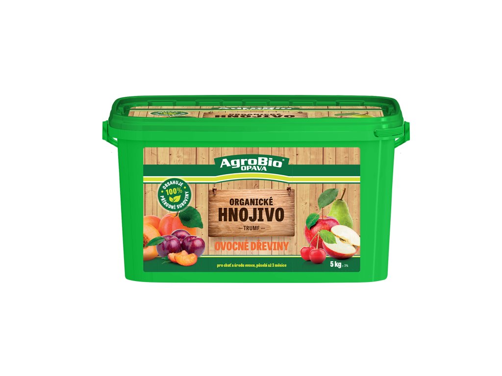 PŘÍRODNÍ HNOJIVO. Ovocné dřeviny organické hnojivo je granulované organické hnojivo vyrobené především z kostní moučky, péřové moučky, krevní moučky, kakaových slupek a vinassy. Obsahuje optimální poměr živin NPK+Mg (6-5-10+3). Svým dlouhodobým působením až po dobu 3 měsíců dodává ovocným dřevinám potřebné živiny. Větší množství draslíku příznivě ovlivňuje tvorbu plodů a jejich dozrávání. Obsah hořčíku podporuje tvorbu listové zeleně, a přispívá tak k dobré kondici listové hmoty ovocných dřevin. Hnojivo se používá pro ovocné dřeviny (jabloně, hrušně, třešně, višně, slivoně, broskvoně, meruňky aj.). Hnojivo působí po dobu až 3 měsíců, tj. 90 dnů.