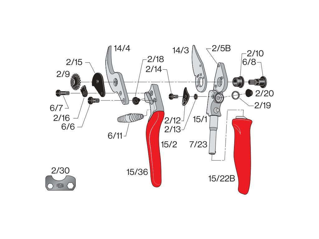 Kompaktní design optimalizovaný s otočnou rukojetí umožňuje FELCO 15 rozložit řeznou sílu a snížit svalové napětí. Snížení potřebné řezné síly o 30 % – není něco, co na konci intenzivního prořezávacího dne zavrhnete.
