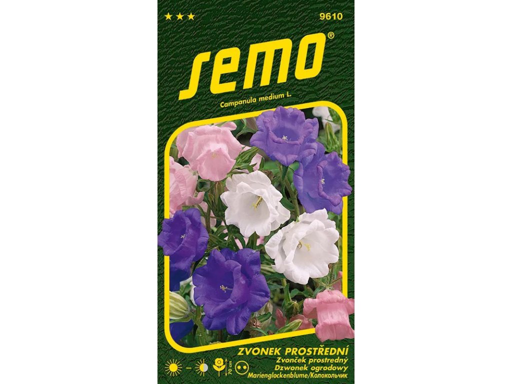 Zvonek prostřední Cup and Saucers směs - výrazná dvouletka s dvojitými květy se zvlněnými okraji korunních lístků ve směsi růžově, bíle a modře kvetoucích rostlin, dorůstá do výšky 70 cm. Zvonek se velmi dobře uplatní ve skupinových i solitérních výsadbách, lze jej také použít i pro řez do váz.